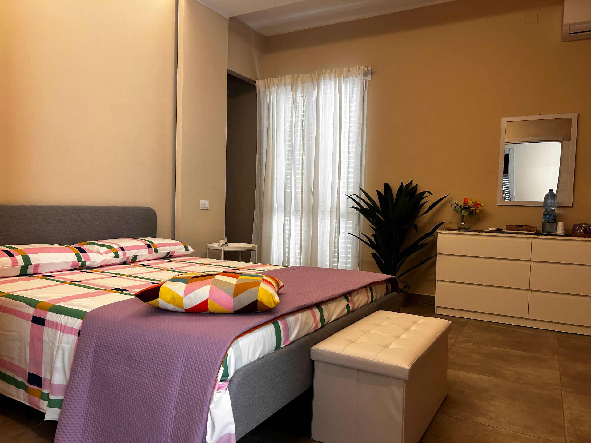 - di SUITE DELUX da 55 mq circa, dotate di ingresso indipendente, bagno privato con doccia, WC e bidet, asciugacapelli, prodotti da bagno, aria condizionata, TV a schermo piatto 40/55 pollici, frigobar, bollitore, WiFi gratuita, parcheggio gratuito;